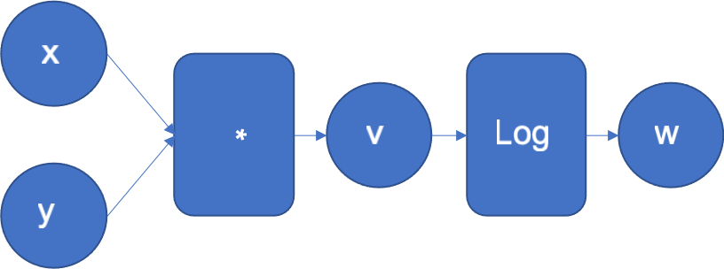 Figure 1: Computational graph of f(x, y) = log(x*y)